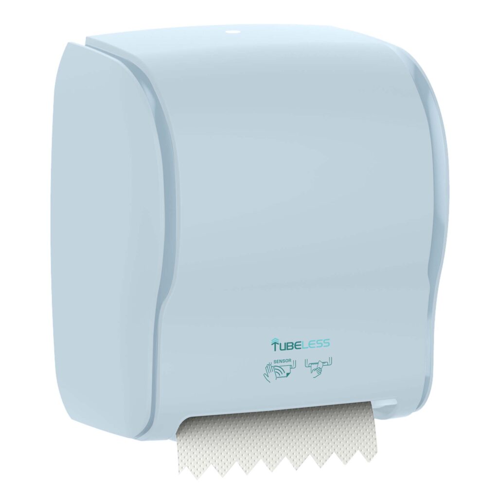 Aparat za papir Autocut 270 ručnik, elegantan i stilski dizajniran, ledeno plave bojeAutoCut dozator role, za ručno doziranje. Ručnici se izvlače iz dozatora i automatski režu na odabranu duljinu.