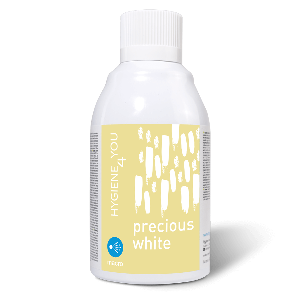 Osvježivač zraka Precious white sadrži 8% više parfema od običnih osvježivača zraka, a njegov veliki volumen, koji sadrži 3000 doza, osigurava da vam osvježivač zraka neće uskoro ponestati. Nota mirisa gurmanski slatki .